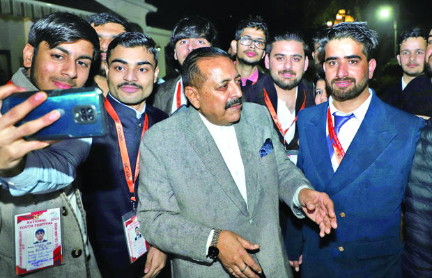 NEW DELHI: Union Minister of State (Independent Charge) for Science and Technology; Earth Sciences and Minister of State for PMO, Department of Atomic Energy, Department of Space, Personnel, Public Grievances and Pensions, Dr. Jitendra Singh hosted a dinner for a group of around 100 students from Jammu & Kashmir and Ladakh on the sidelines of the ongoing “National Youth Festival 2025”, organized by the Union Ministry of Youth Affairs and Sports.