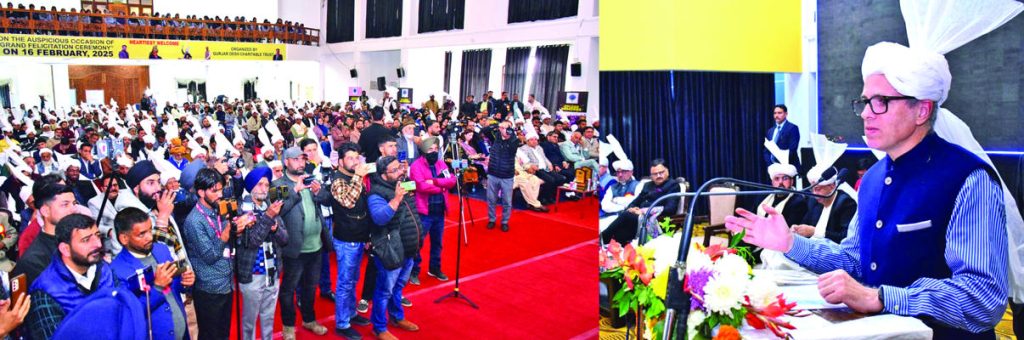 Chief Minister Omar Abdullah speaking at felicitation ceremony at Gurjar Desh Charitable Trust in Jammu on Sunday.