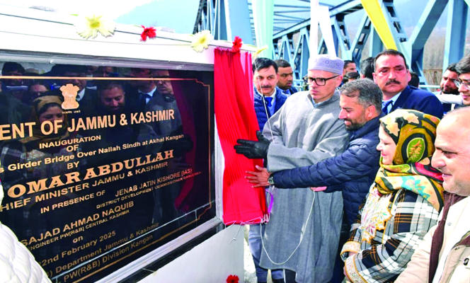 KANGAN (GANDERBAL): Chief Minister Omar Abdullah on Saturday inaugurated the 82-meter-long Akhal Bridge over River Sind in the Kangan area of Ganderbal district.