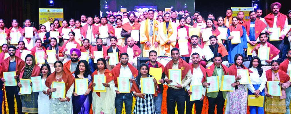 Under the Jammu region, a huge number of 11292 students were declared successful and eligible to receive Diplomas and Degree Certificates in the 38th Convocation function at Jammu which included 4987 learners of Master Degree programmes, 5852 learners of Bachelor Degree programmes, 328 learners of Diploma/Post Graduate Diploma programmes and 125 learners of Certificate/Post Graduate Certificate programmes.