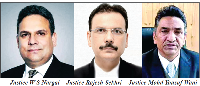“In exercise of the power conferred by the Constitution of India, the President of India, after consultation with the Chief Justice of India, is pleased to appoint the following Judges of Jammu & Kashmir and Ladakh High Court, Justices Wasim Sadiq Nargal, Rajesh Sekhri, and Mohammad Yousuf Wani as Permanent Judges of the J&K and Ladakh High Court.”