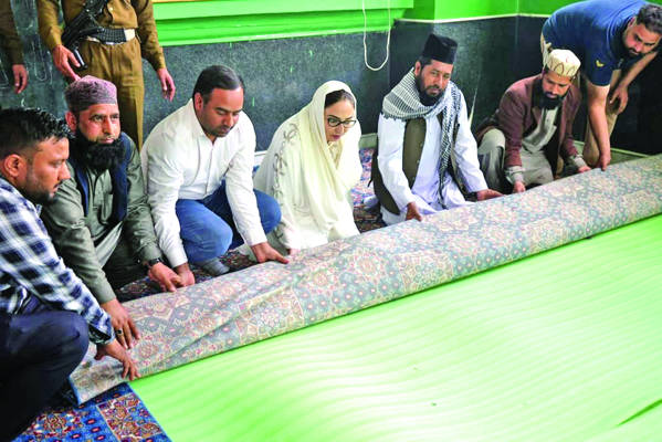 Dr Darakhshan Andrabi led the Carpet Laying at the shrine and in the Mosque in the shrine complex.