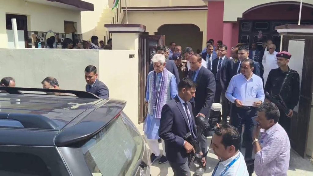 JAMMU: Jammu and Kashmir Lieutenant Governor Manoj Sinha visited the families of four policemen who lost their lives in an encounter with Pakistani terrorists in Kathua district on Monday and expressed his condolences and support to them.