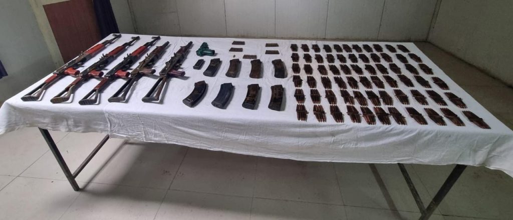 A significant cache of arms and ammunition, including five AK-47 rifles, eight AK-47 magazines, a pistol, a pistol magazine, 660 rounds of AK-47 ammunition, a pistol round and 50 rounds of M4 ammunition, was seized from the site, the official said.