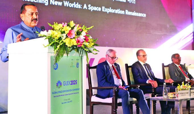 NEW DELHI: India affirmed its growing prominence as a leading “Space Power” in the global arena as Union Minister of State (Independent Charge) for Science and Technology; Earth Sciences and Minister of State for PMO, Department of Atomic Energy, Department of Space, Personnel, Public Grievances and Pensions, Dr. Jitendra Singh addressed the “Global Space Exploration Conference” (GLEX 2025) at Yashobhoomi, here.