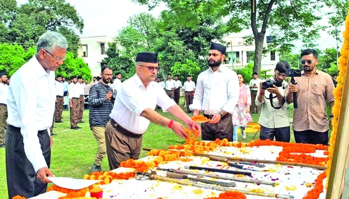 JAMMU: The Swami Vivekananda Vidyarthi Shakha of Jammu University celebrated the 100th Foundation Day of the Rashtriya Swayamsevak Sangh (RSS) in the university premises.