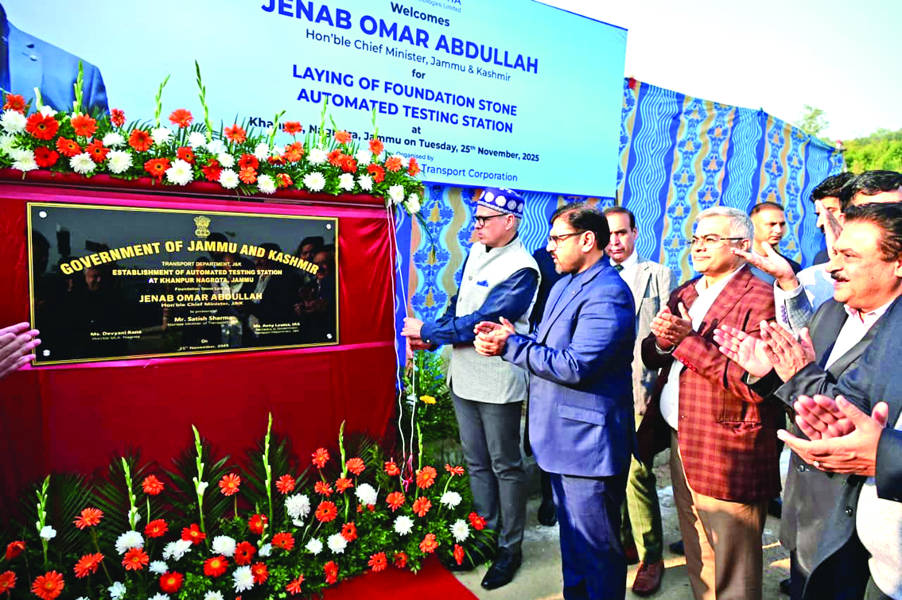 JAMMU: Chief Minister Omar Abdullah on Tuesday laid the foundation stone for setting up of an Automated Vehicle Testing Station (ATS) at Khanpur, Nagrota, Jammu, marking a significant stride towards strengthening road safety and modernising transport infrastructure in Jammu and Kashmir.