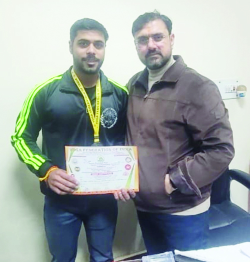 Aryaaveer Singh of Jammu & Kashmir has brought laurels by winning a second bronze medal in the 50th (Golden Jubilee) Senior National Yoga Sports Championship at Mysore, Karnataka in the 21-30 years Professional Yogasana category. This remarkable feat has earned him a coveted selection for the Asian Yoga Sports Championship, solidifying his rising prominence. Aryaaveer made history as J&K’s first yoga sports medalist with a bronze at the 49th Senior National Yogasana Sports Championship held in Thiruvananthapuram, Kerala, in the same category. Minister for Youth Services & Sports, Sh. Satish Sharma, felicitated him on his achievements.