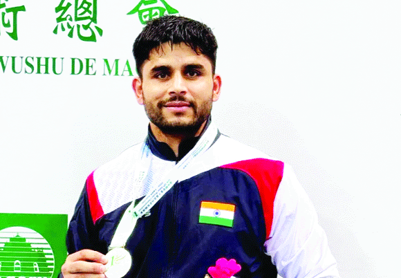strong opponent from Kazakhstan, marking a proud moment not just for J&K, but for the entire nation. Rajat was part of the 16-member Indian Wushu contingent, which delivered a remarkable performance overall, securing 3 Gold, 3 Silver, and 5 Bronze medals. Charak had previously earned a Silver medal in the 2024 Asian Championship in Macau, China, which qualified him for this elite continental event. His continued rise on the international stage is backed by a consistent medal-winning record, and he is currently serving in the Indian Army.
