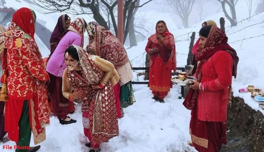 The womenfolk, who perform age-old rituals in groups at Nag temples followed by a visit to the natural springs, said this is for the first time that there is no snow on the ground during ‘Gauri Tritiya’ (Kanchoth) festival.