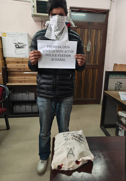 “During checking at Nagdandi crossing in Anantnag, a person identified as Ishfaq Ahmad Malik, resident of Sombruna, was apprehended. During search, a powdered charas-like substance weighing approximately 330 grams was recovered from his possession,” a police spokesman said.