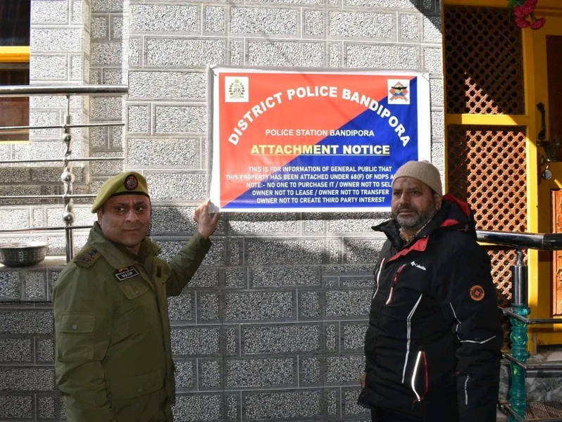 SRINAGAR: Jammu and Kashmir Police on Thursday attached a three-story residential house belonging to an alleged drug peddler in Bandipora district.