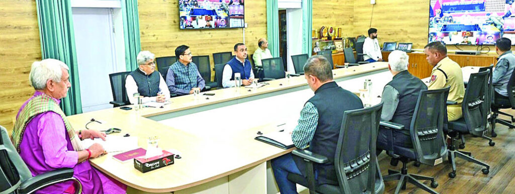 JAMMU: The Lieutenant Governor, Manoj Sinha held a review meeting in Jammu on Sunday on the security situation across the UT of Jammu Kashmir. Chief Secretary, Atal Dulloo, DGP, Nalin Prabhat, other senior officials and all DCs and SSPs attended the meeting.